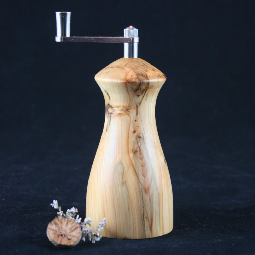 Sie können hier eine Muskatmühle aus Albwacholder erwerben. Die Mühle ist in Handarbeit hergestellt und das individuelle Holz sorgfältig ausgewählt um die einzigartige Maserung des Holzes besonders zur Geltung zu bringen.